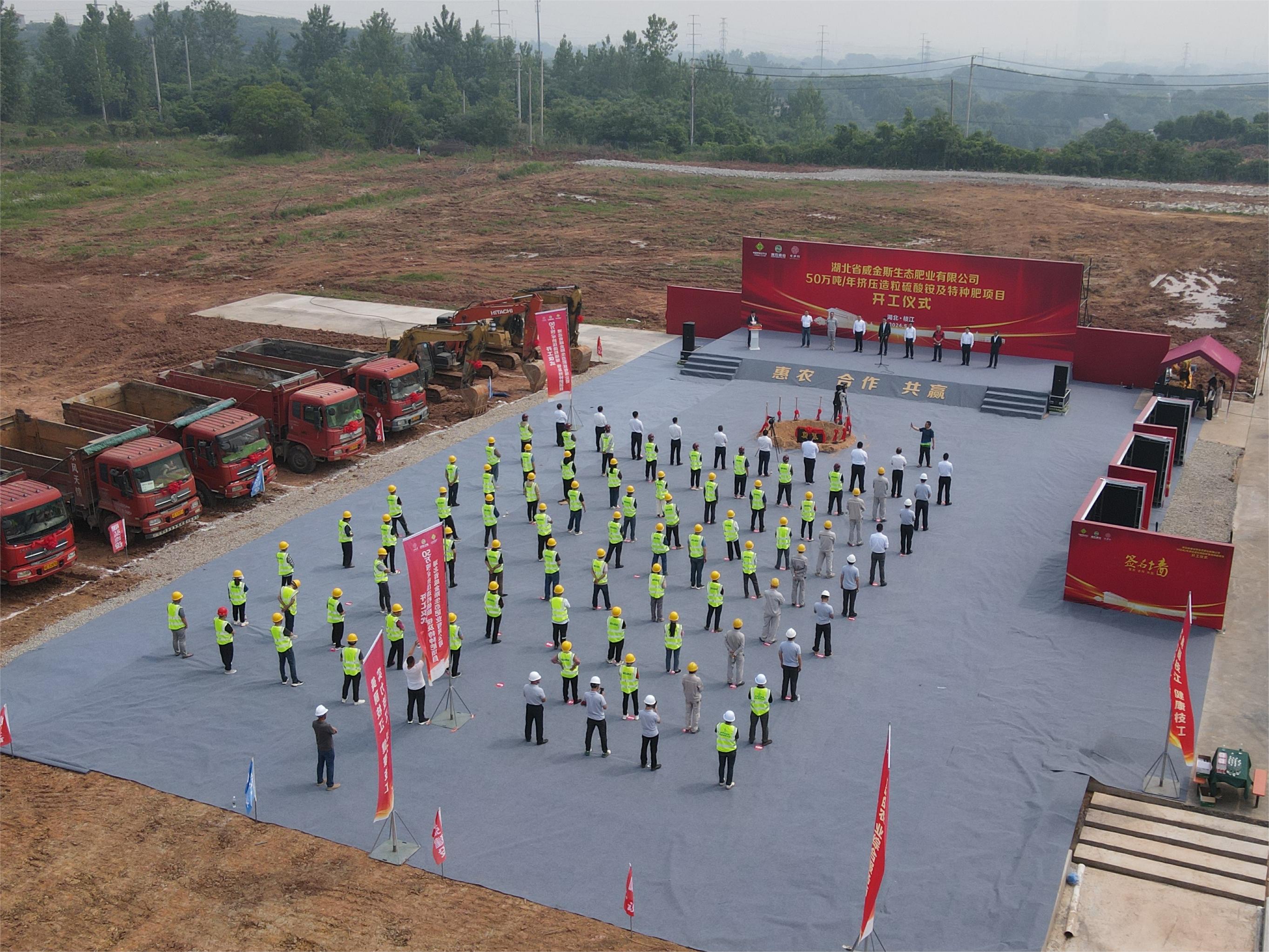 5月9日上午,浙農股份推進科工貿結合又一項目——惠多利下屬湖北省威金斯生態(tài)肥業(yè)有限公司50萬噸/年擠壓造粒硫酸銨及特種肥項目在枝江市舉行開工儀式。枝江市委副書記、市長黃芳帥,枝江市委常委、市委統(tǒng)戰(zhàn)部部長李家鈔,宜昌市供銷社副主任徐培榮,枝江高新區(qū)黨工委書記、管委會主任夏克松,浙農股份黨委書記、董事長葉偉勇,湖北三寧化工工會書記、紀委書記向超,宜昌天賜高新材料工廠廠長趙啟輝,惠多利總經理許建斌等出席儀式,宜昌供銷集團、枝江市直機關、經開區(qū)等單位領導,項目施工方代表、戰(zhàn)略合作單位代表及湖北威金斯全體員工等參加儀式。